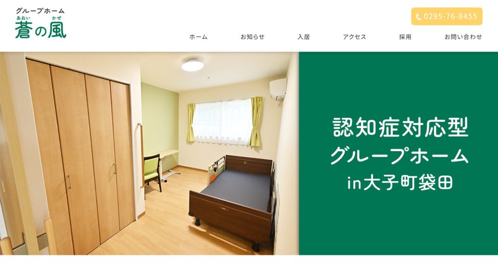 認知症高齢者向けグループホームの温かみと信頼感を両立させたWebサイト。