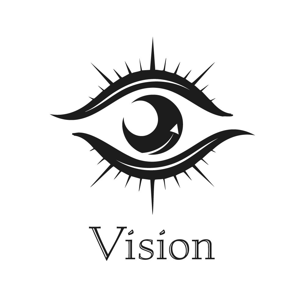 オカルト系ビジネス向けに制作した「Vision」のブランドアイデンティティ。神秘的な眼差しの中に三日月を宿し、運気上昇を象徴する矢印を瞳に忍ばせた。