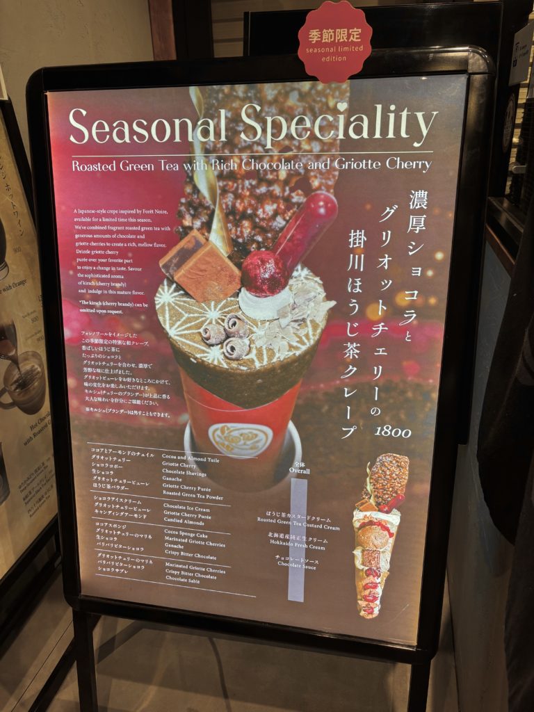 高級和クレープ専門店の期間限定商品のためのポスターデザイン。