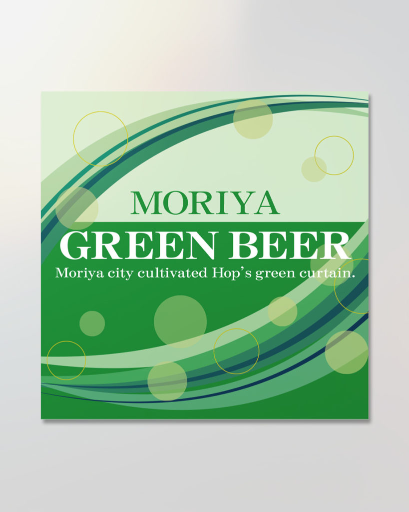 A label design entry for the Moriya City 20th Anniversary Beer Label Design Competition. The flowing lines represent the breeze of a new era, while the scattered circles evoke the lively effervescence of beer — together capturing the celebratory spirit of the city’s milestone. The typography is set in a refined, classic style befitting a premium beer label.